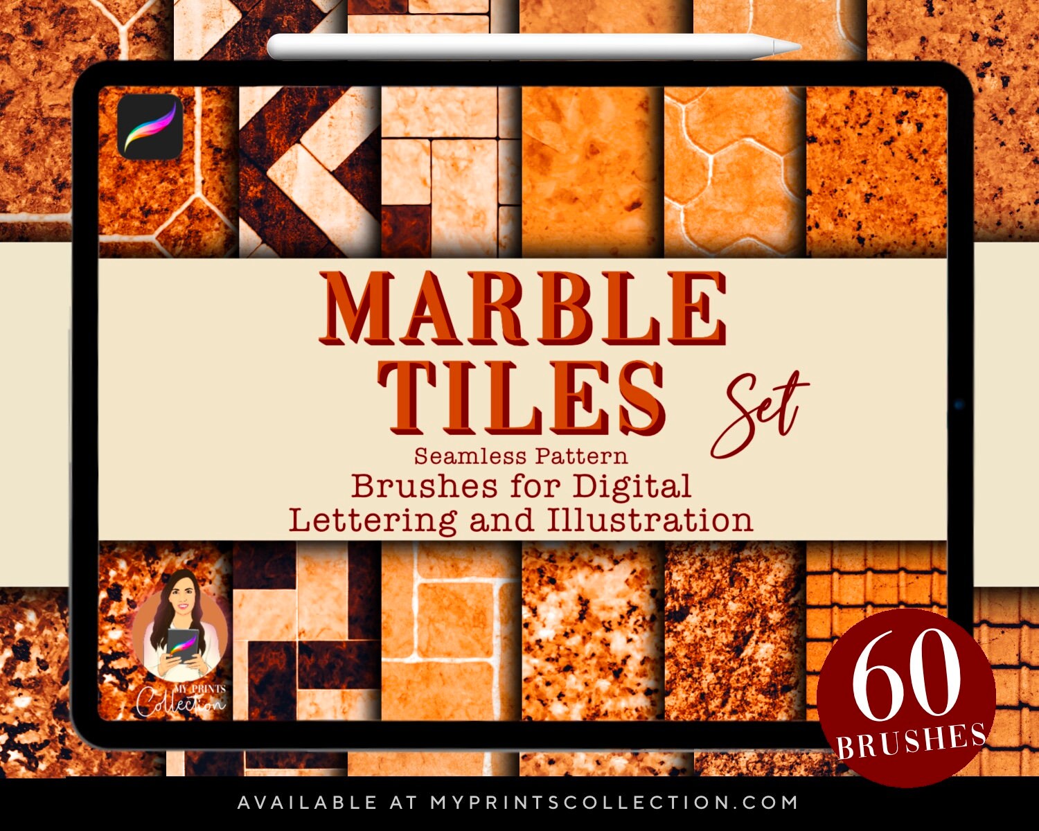 Marble Tiles Procreate Set 60 Seamless Brushes Floor Etsy